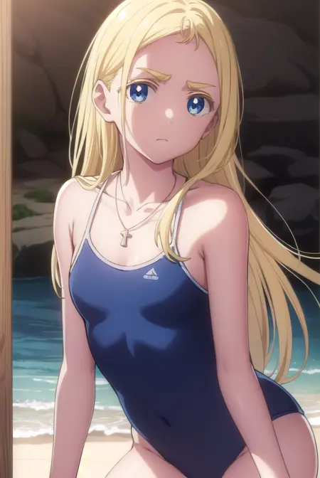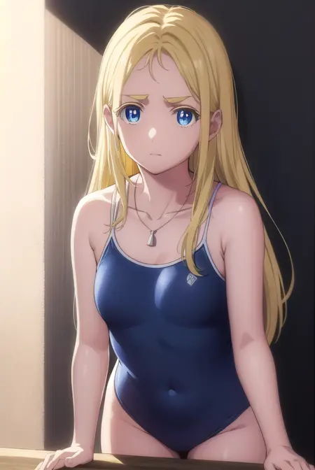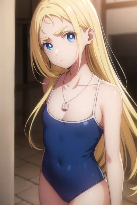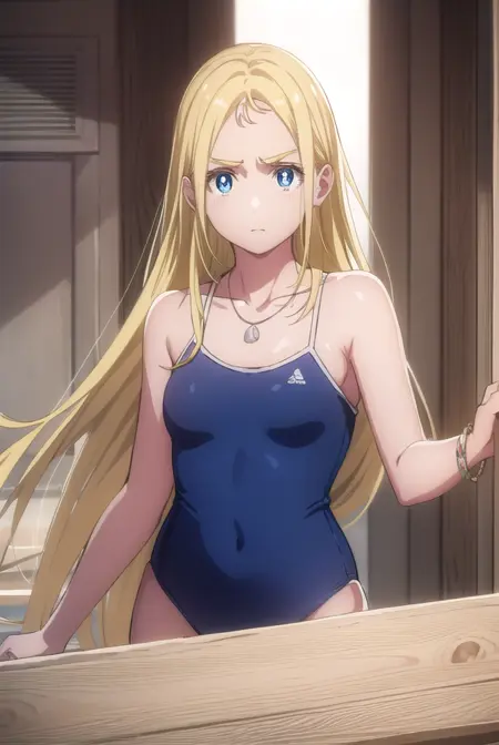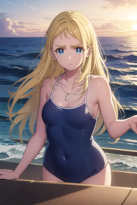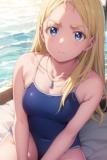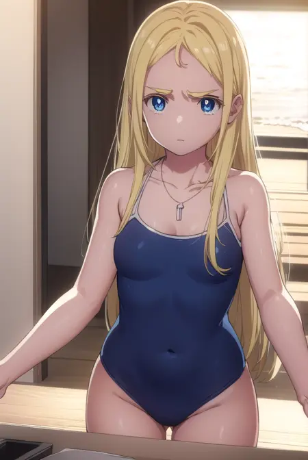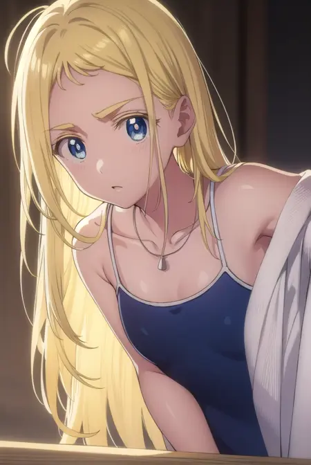 ushio kofune,长发,蓝眼睛,金发,非常长的头发,直发,(额头:1.2),