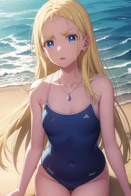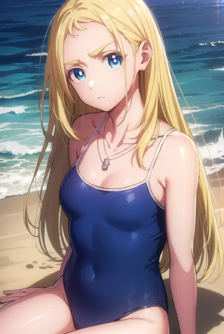 jewelry, collarbone, swimsuit, necklace, one-piece swimsuit, school swimsuit, blue one-piece swimsuit, competition school swimsuit, shell necklace,
