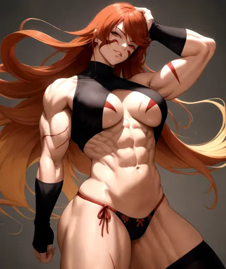次のプロンプトの使用をお勧めします:fuma kotaro、長い髪、赤い目、非常に長い髪、筋肉質、タトゥー、顔のマーク