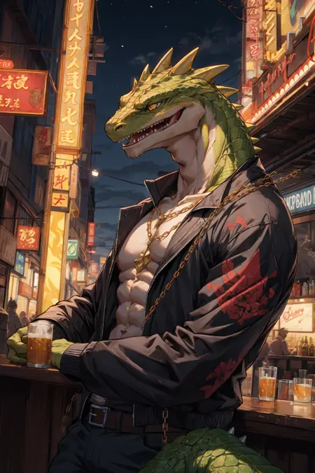 This model is easy to generate male lizardmen. See note for recommended prompts.
