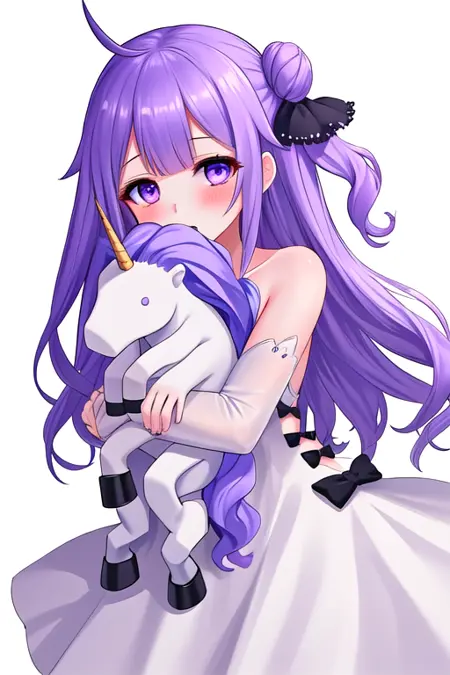 yunikoon、推奨タグはbest quality, masterpiece, highres, solo, {yunikoon:1.15}, purple_hair, long_hair, unicorn_\(azur_lane\), purple_eyes, bangs, ahoge, blush, very_long_hair, ribbon, hair_bun, single_hair_bun, hair_ribbon, one_side_up, single_side_bun, stuffed_toy, breastsです。 - 推奨重み: 0.5–1.15