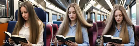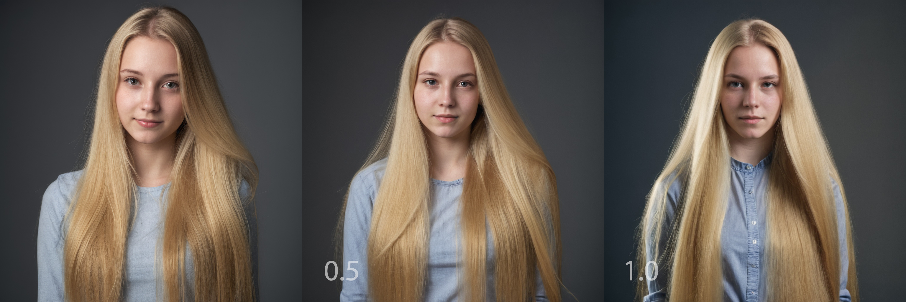Limitations of the model include generating old or nonhuman people. I did try to train a diversity of skin tones and hair types but in general this will produce long and flowing hair.