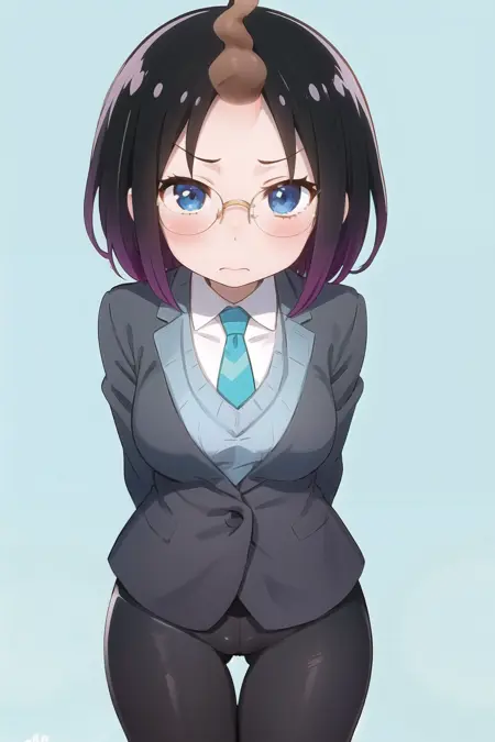 - 办公室服装:OL 女郎、黑色裤子、蓝色领带、外套、眼镜。