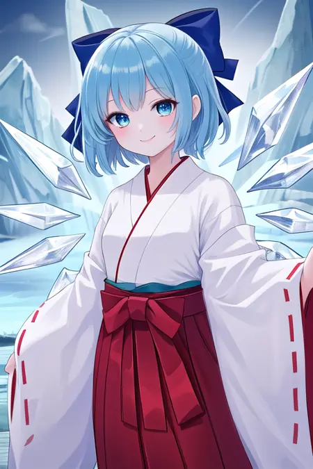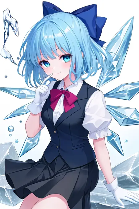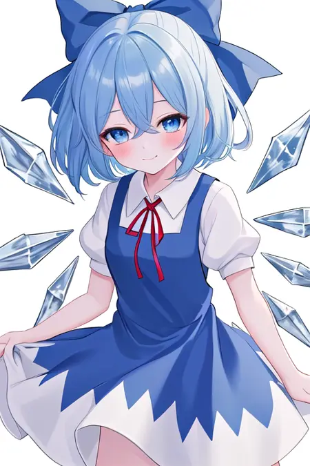 • The trigger word is chiruno, and the recommended tags are best quality, masterpiece, highres, solo, {chiruno:1.15}, blue_hair, bow, cirno, short_hair, hair_bow, wings, blue_eyes, ice, ice_wings, blue_bow, ribbon, smile..