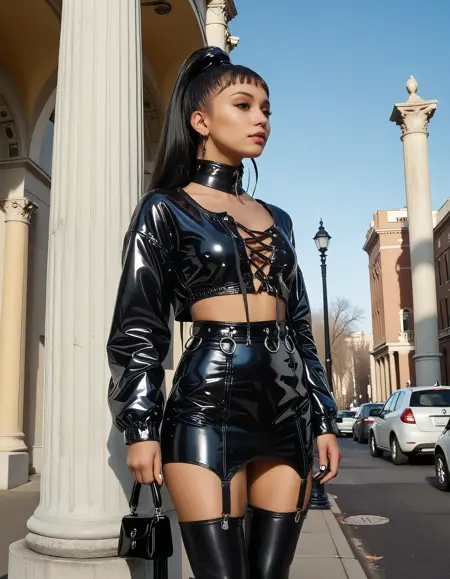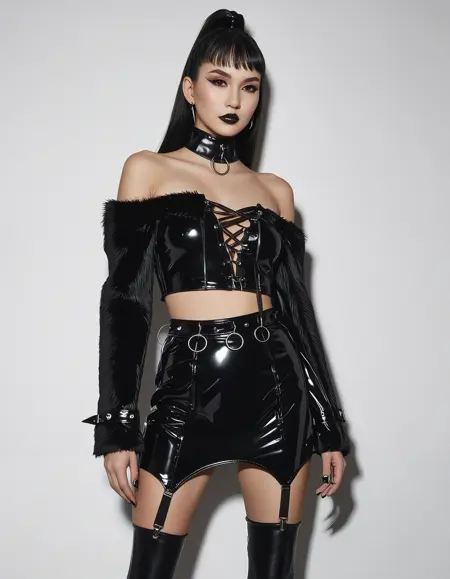 -The first model consists of Club Exx - Rude Awakening Harness Top and Lace-Up Shorts, with colors being freely selectable.
