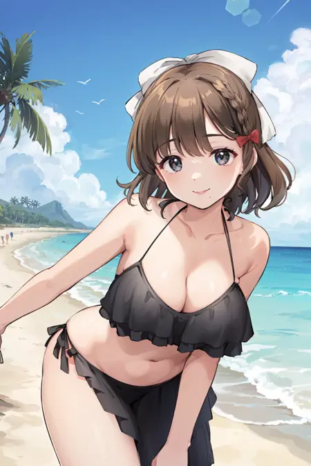 This LoRA model is fit to a frilled bikini similar to Mamiya's. If you'd like to generate other bikinis please keep the model weight low (around 0.6) and adjust the prompt as needed.