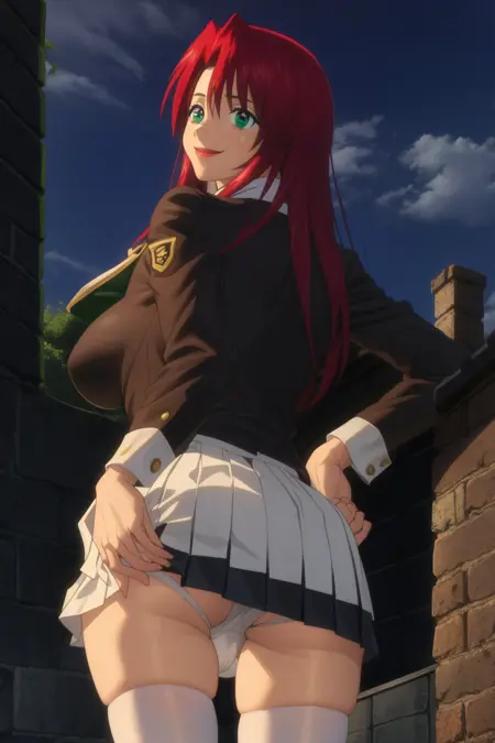 주요 태그: YuuMikihara, red hair, 1girl, solo, green eyes, long hair, maid headdress, open mouth, maid, large breasts