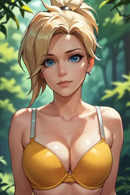 提示词: wearing a shinestrap bra —— 可生成不同颜色、图案和印花,并根据所用角色 LoRa 自动适配角色特征。可在多个 SDXL 模型中生成写实与动漫风格。颜色选择可能意外影响妆容、眼色和背景颜色。