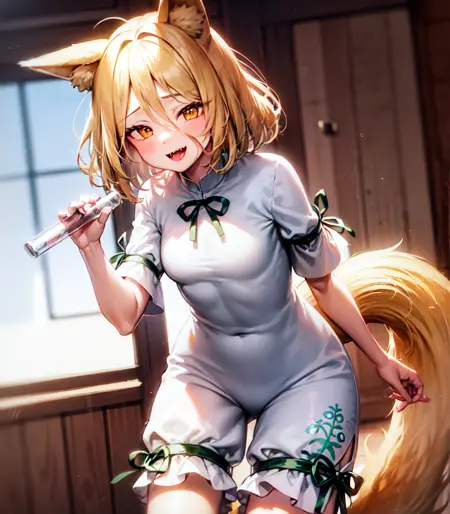 ※ 若出现她手中意外出现试管的情况,可在负面提示中加入 手持试管 来规避。