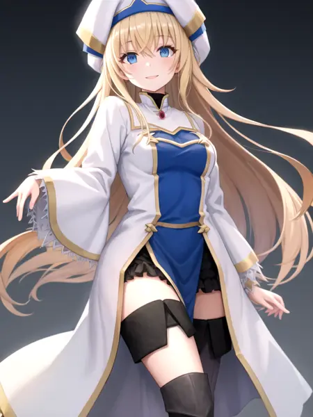 priestess \(goblin slayer\), blonde hair, long hair, blue eyes