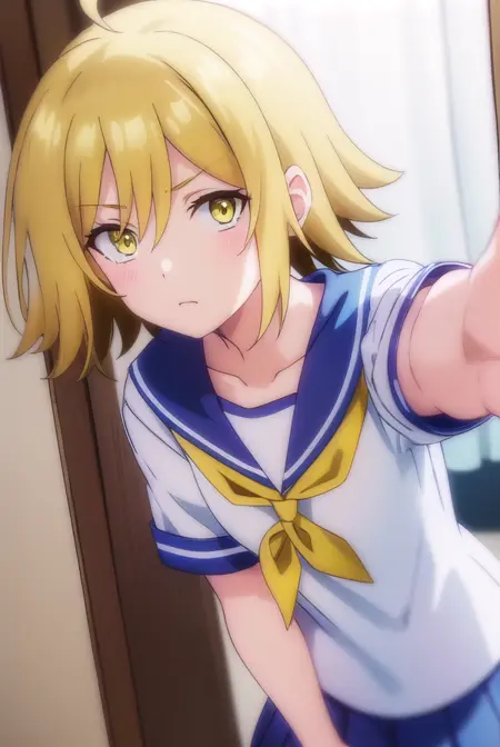 うららうらかた、短い髪、金髪、アホ毛、(黄色い目:1.5)