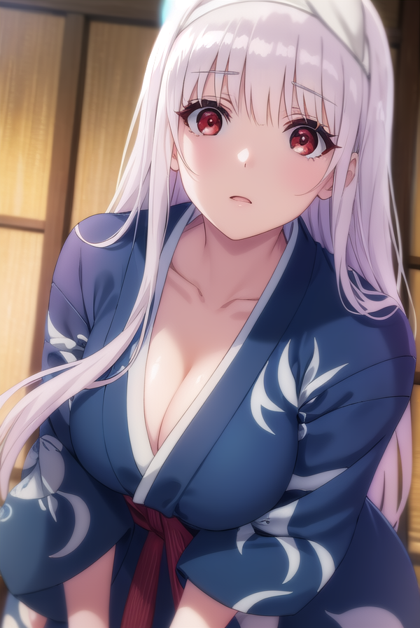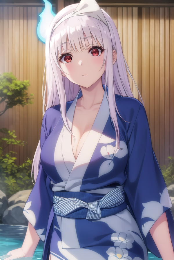 yuuna yunohana, long hair, (red eyes:1.3), white hair,