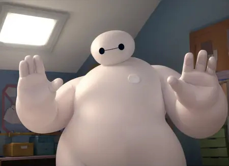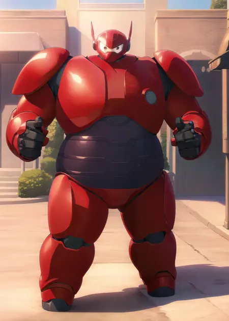 I experimented with having 3 outfits for Baymax (no armor, armor mk1, armor mk2), including one of those in your prompt should help with getting the right appearance.