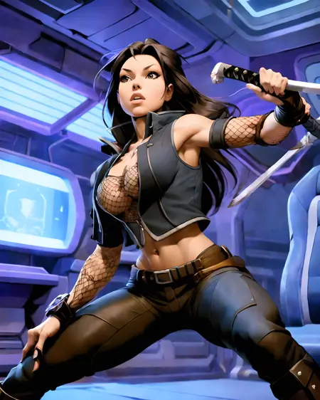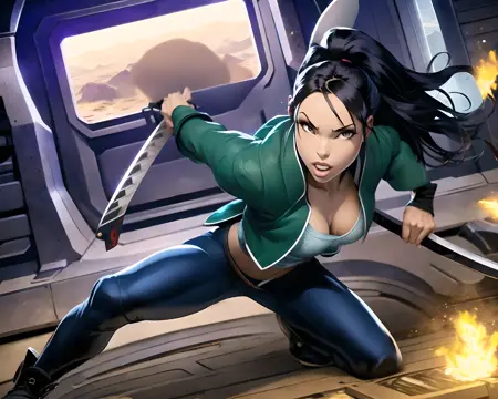 이것은 건블라스트 걸스의 조종사입니다! 그녀의 디자인이 귀여워서 "어차피 해볼까" 하고 만들었죠. 그녀는 몇 장의 이미지가 있고, 정말 귀여운 외모에 칼을 들고 있잖아요 lol. 그녀는 그들의 조종사로, 양손에 카타나를 휘두르고 가끔 두 개의 꼬리머리를 묶어요 :)