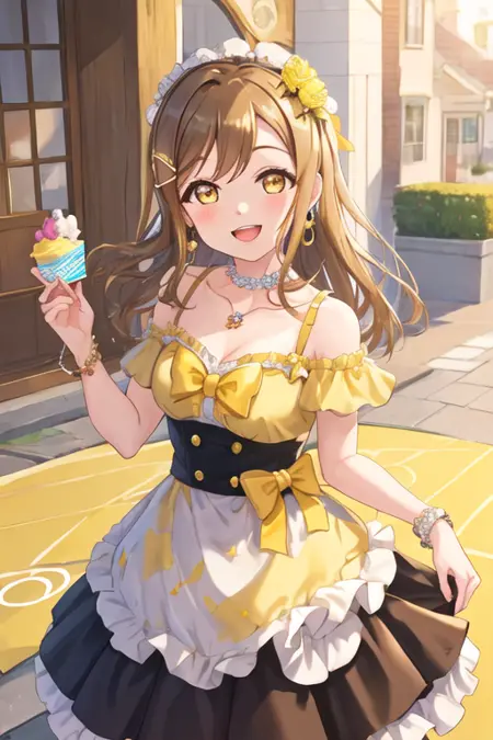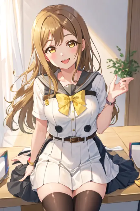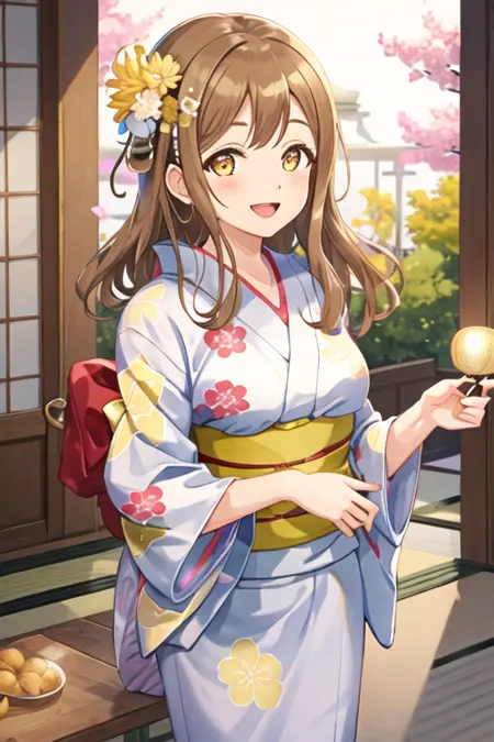 触发词为kunikida_hanamaru_lovelivesunshine,推荐标签为:best quality, masterpiece, highres, solo, {kunikida_hanamaru_lovelivesunshine:1.15}, brown_hair, bangs, long_hair, blush, yellow_eyes, smile, brown_eyes, open_mouth。