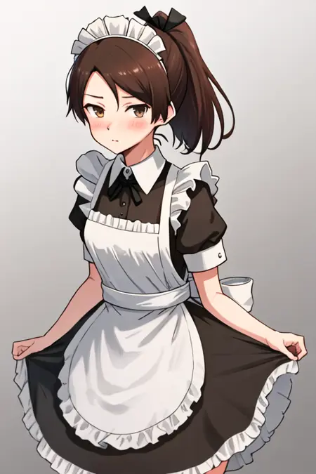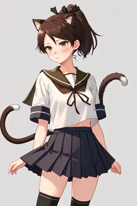 トリガーワードはshikinami_kantaicollection、推奨タグはbest quality, masterpiece, highres, solo, {shikinami_kantaicollection:1.15}, brown_hair, ponytail, brown_eyes, short_hair, hair_ribbon, ribbon, serafuku, blushです。