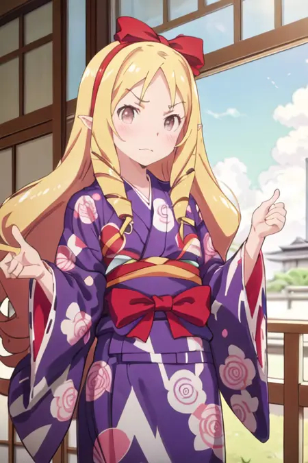트리거 단어는 yamada_elf_eromangasensei이며, 권장 태그는 best quality, masterpiece, highres, solo, {yamada_elf_eromangasensei:1.15}, blonde_hair, long_hair, blush, drill_hair, brown_eyes, bow, hair_bow, pointy_ears, red_bow, hairband입니다.