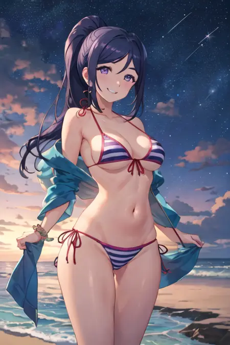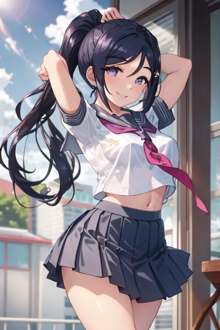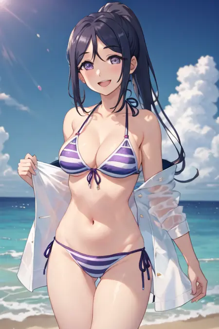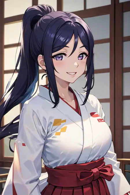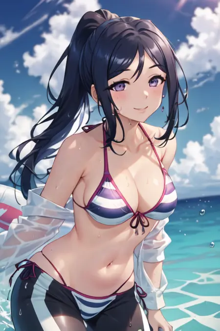 The trigger word is matsuura_kanan_lovelivesunshine, and the recommended tags are best quality, masterpiece, highres, solo, {matsuura_kanan_lovelivesunshine:1.15}, purple_eyes, blue_hair, long_hair, smile, ponytail, blush, bangs, sidelocks, breasts.