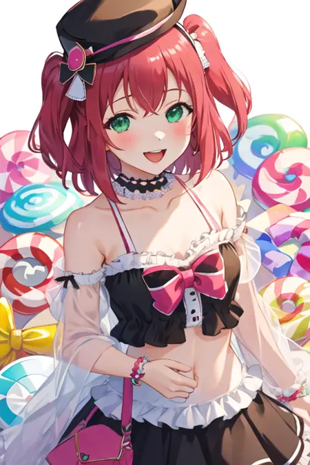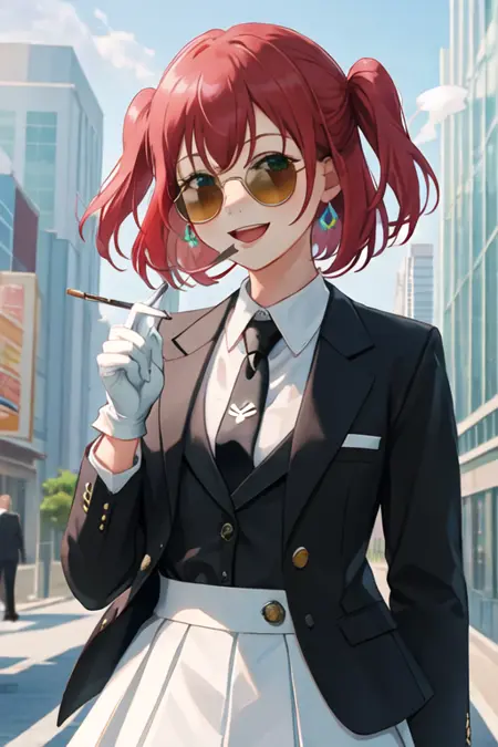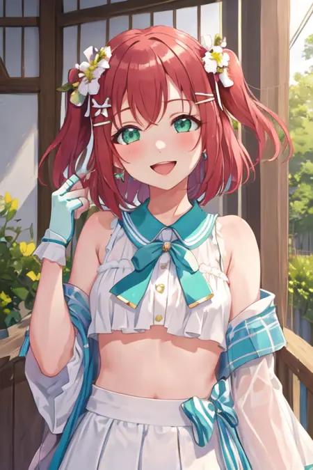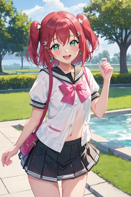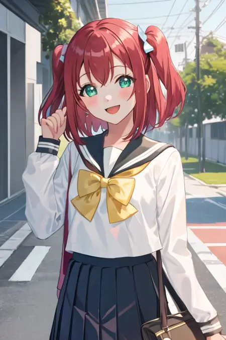 The trigger word is kurosawa_ruby_lovelivesunshine, and the recommended tags are best quality, masterpiece, highres, solo, {kurosawa_ruby_lovelivesunshine:1.15}, red_hair, bangs, blush, two_side_up, smile, aqua_eyes, green_eyes, open_mouth, short_hair, hair_ornament.