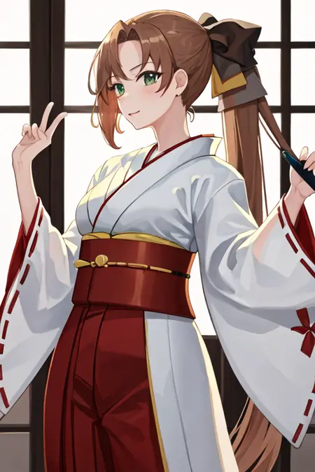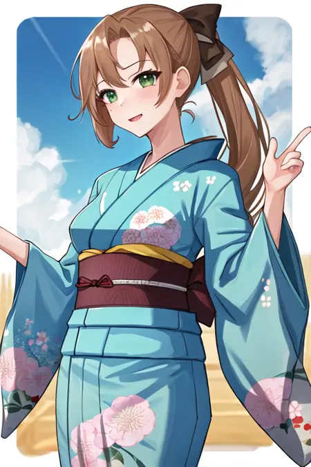 The trigger word is akigumo_kantaicollection, and the recommended tags are best quality, masterpiece, highres, solo, {akigumo_kantaicollection:1.15}, brown_hair, long_hair, ponytail, green_eyes, ribbon, hair_ribbon, mole_under_eye, mole, breasts.