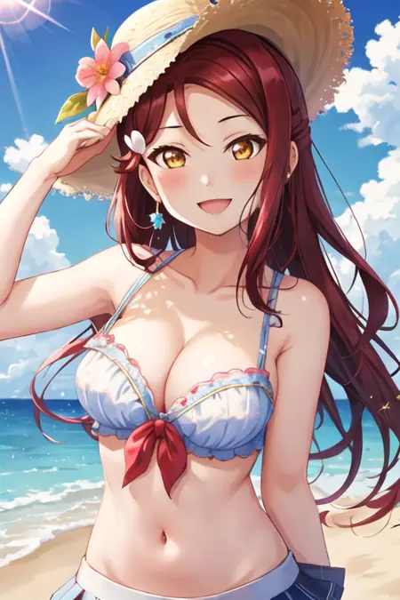 트리거 단어는 sakurauchi_riko_lovelivesunshine이며, 권장 태그는 best quality, masterpiece, highres, solo, {sakurauchi_riko_lovelivesunshine:1.15}, red_hair, long_hair, yellow_eyes, hair_ornament, blush, smile, hairclip, breasts입니다.