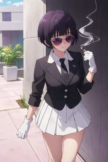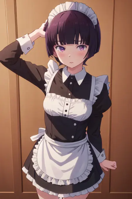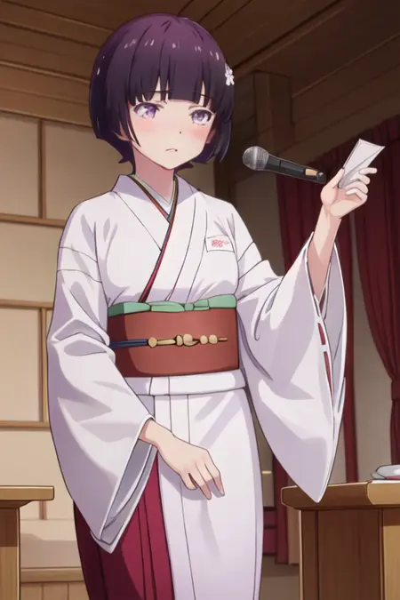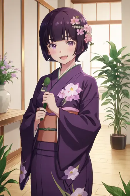 The trigger word is senju_muramasa_eromangasensei, and the recommended tags are best quality, masterpiece, highres, solo, {senju_muramasa_eromangasensei:1.15}, short_hair, blush, purple_hair, bangs, blunt_bangs, purple_eyes, black_hair.