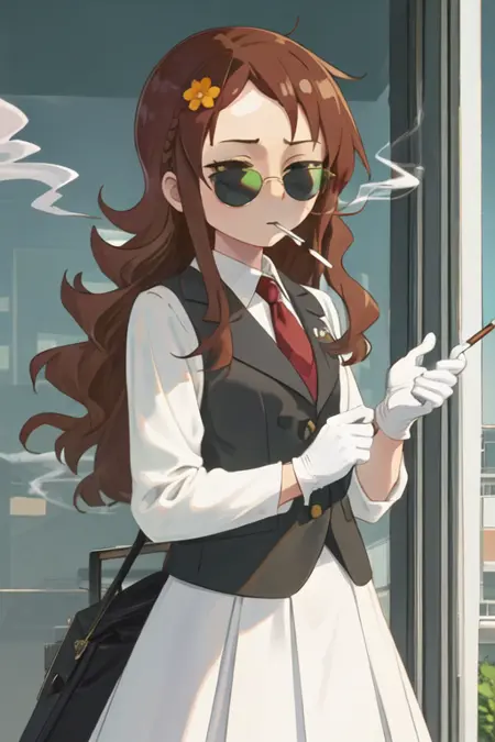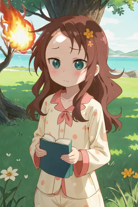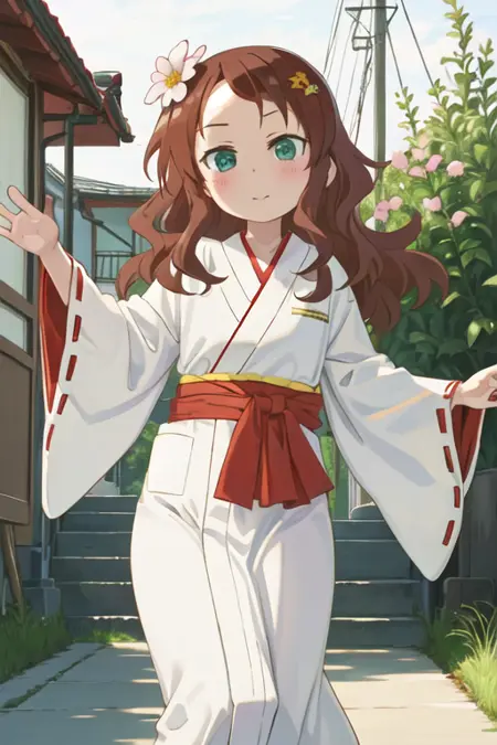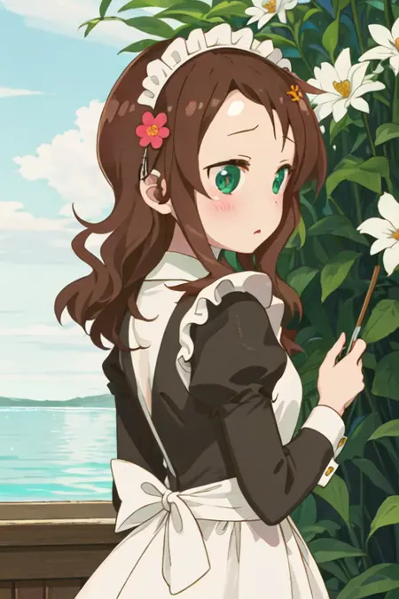 触发词为riko_saikawa_kobayashisanchinomaidragon,推荐标签为:best quality, masterpiece, highres, solo, {riko_saikawa_kobayashisanchinomaidragon:1.15}, brown_hair, blush, long_hair, green_eyes, hair_ornament, flower, hair_flower。