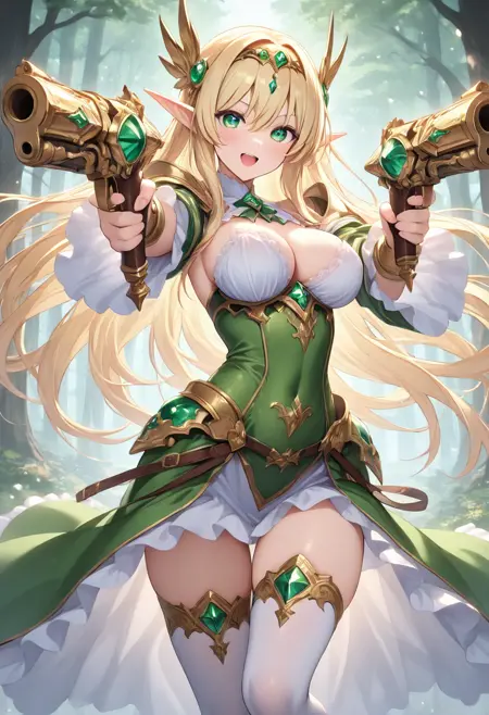"score_9, score_8_up, score_7_up, score_6_up, score_5_up, score_4_up, (a close up shot of a beautiful witch with orange hair, wearing robe and clover tophat goldcoin in background, aiming pistol against the camera:1.2) magical castle in background, vibrant, concept art, digital art, realistic"