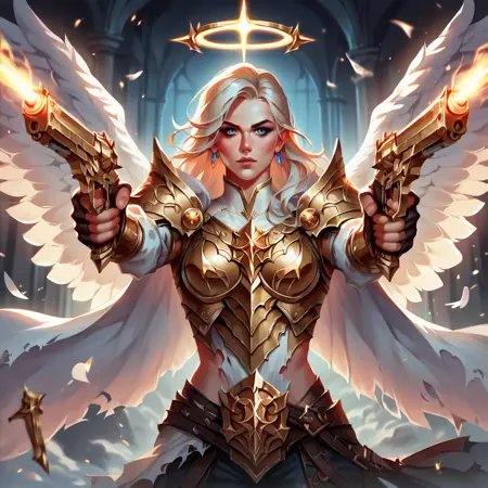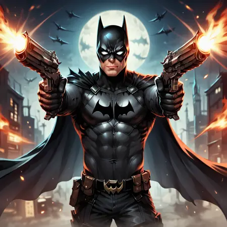 "Masterpiece (quality), 1boy, police uniform, holding two pistols, dual pistols, office in background"
