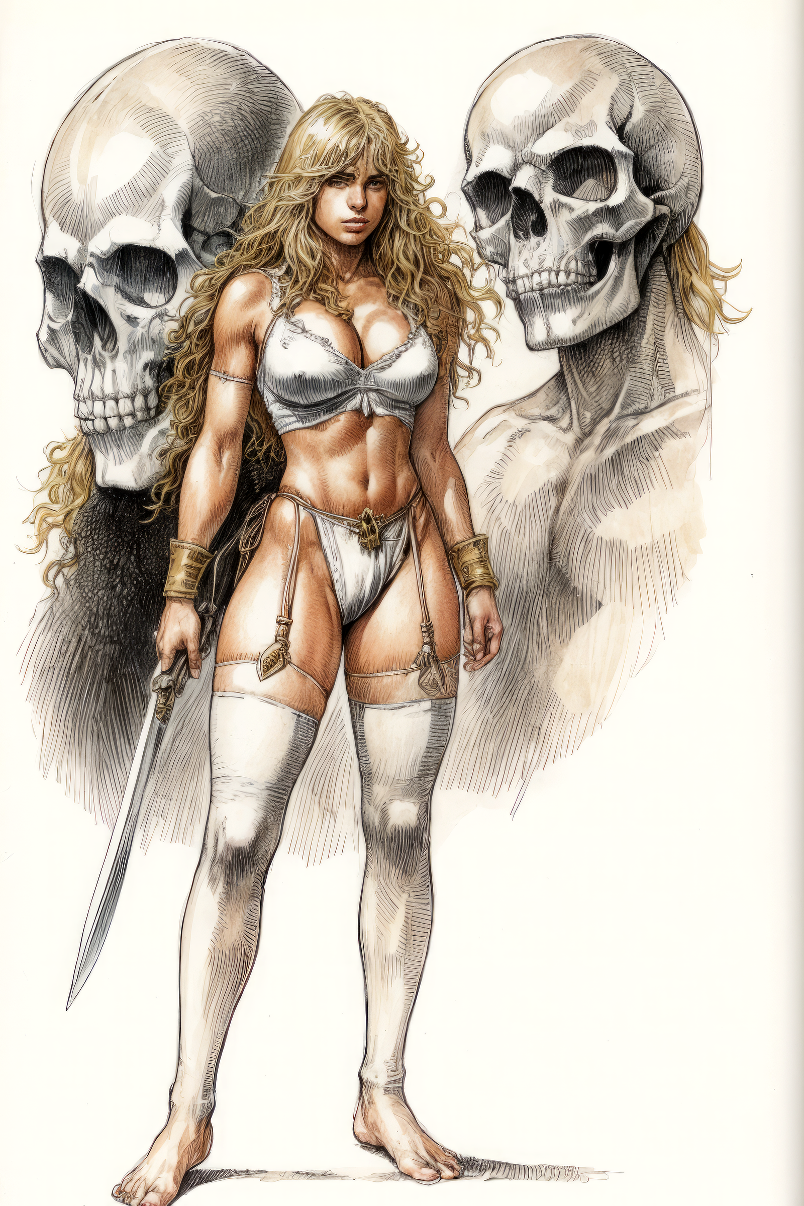 The style of Druuna can be described as highly detailed and realistic, with Serpieri's exceptional artistic skills evident in the intricate and finely rendered illustrations. The character of Druuna herself is often depicted with exaggerated, voluptuous proportions, and the settings are richly detailed, creating a visually immersive experience.
