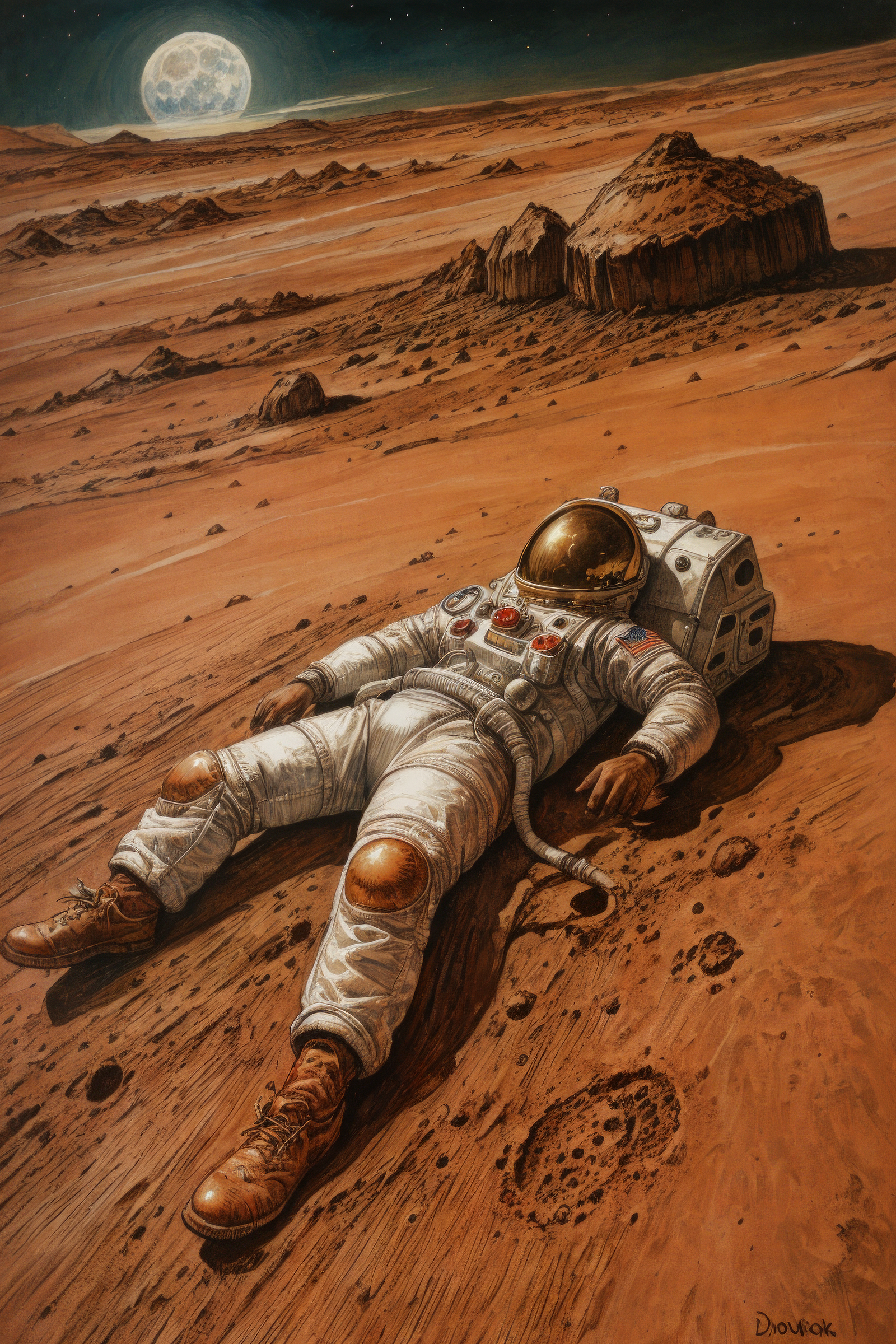 The overall tone of the series is dark, atmospheric, and dystopian, featuring post-apocalyptic landscapes and a sense of decay. Serpieri's use of lighting and shadow adds depth and mood to the scenes, contributing to the overall atmospheric and cinematic quality of the artwork.