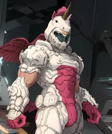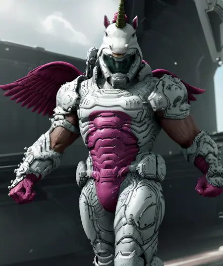 I made Doomicorn LoRA. Doomicorn itself is a skin that available in Doom Eternal game. Sadly this skin it's quite hard to gather and no way to get it nowadays, afaik. So, to solve this, I made this LoRA instead.