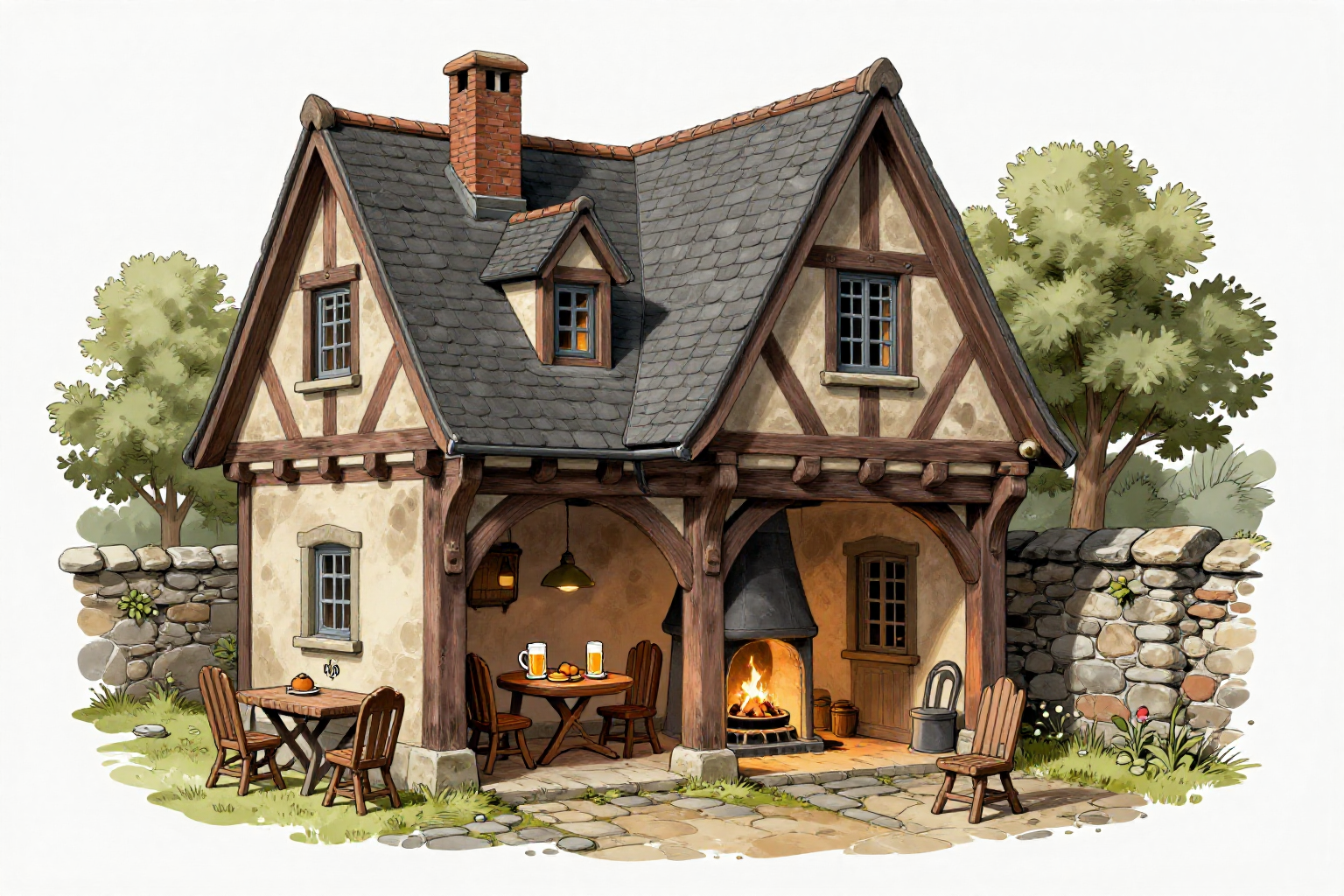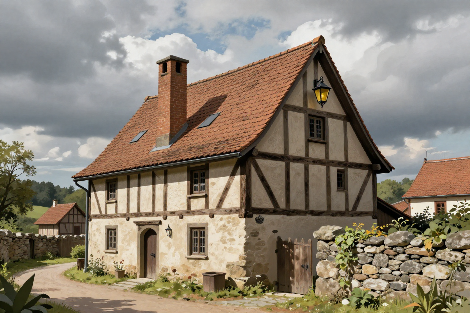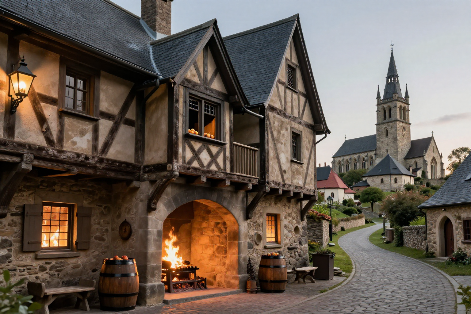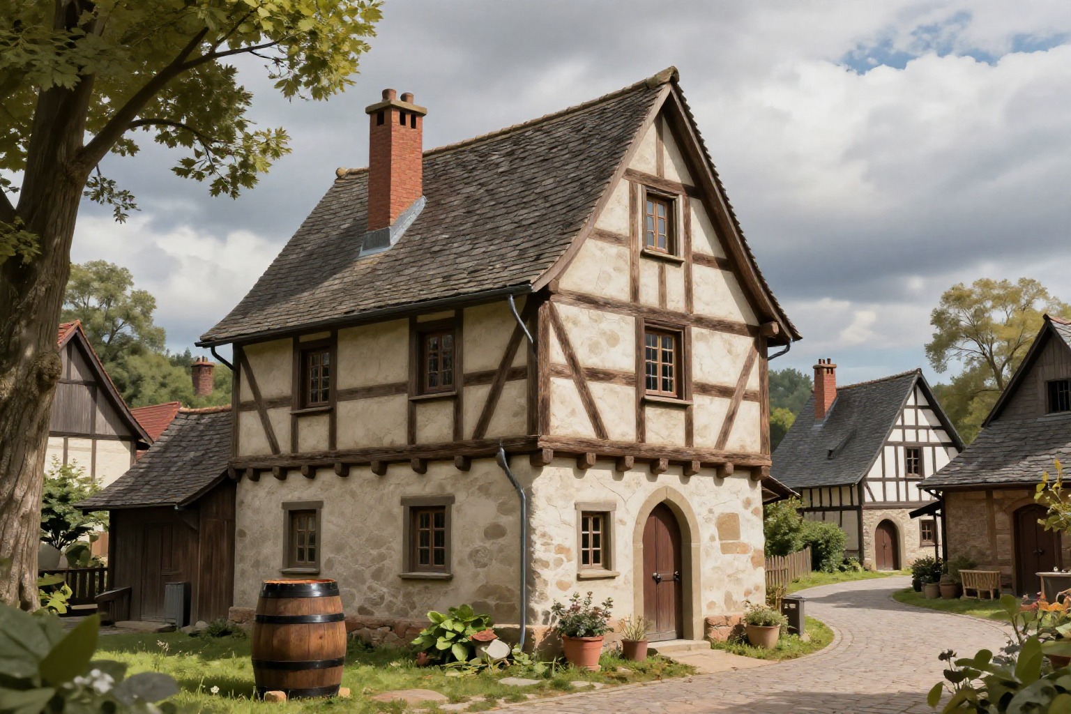 中世ドイツ、ファンタジー插絵、半木造家屋、中世の建物、