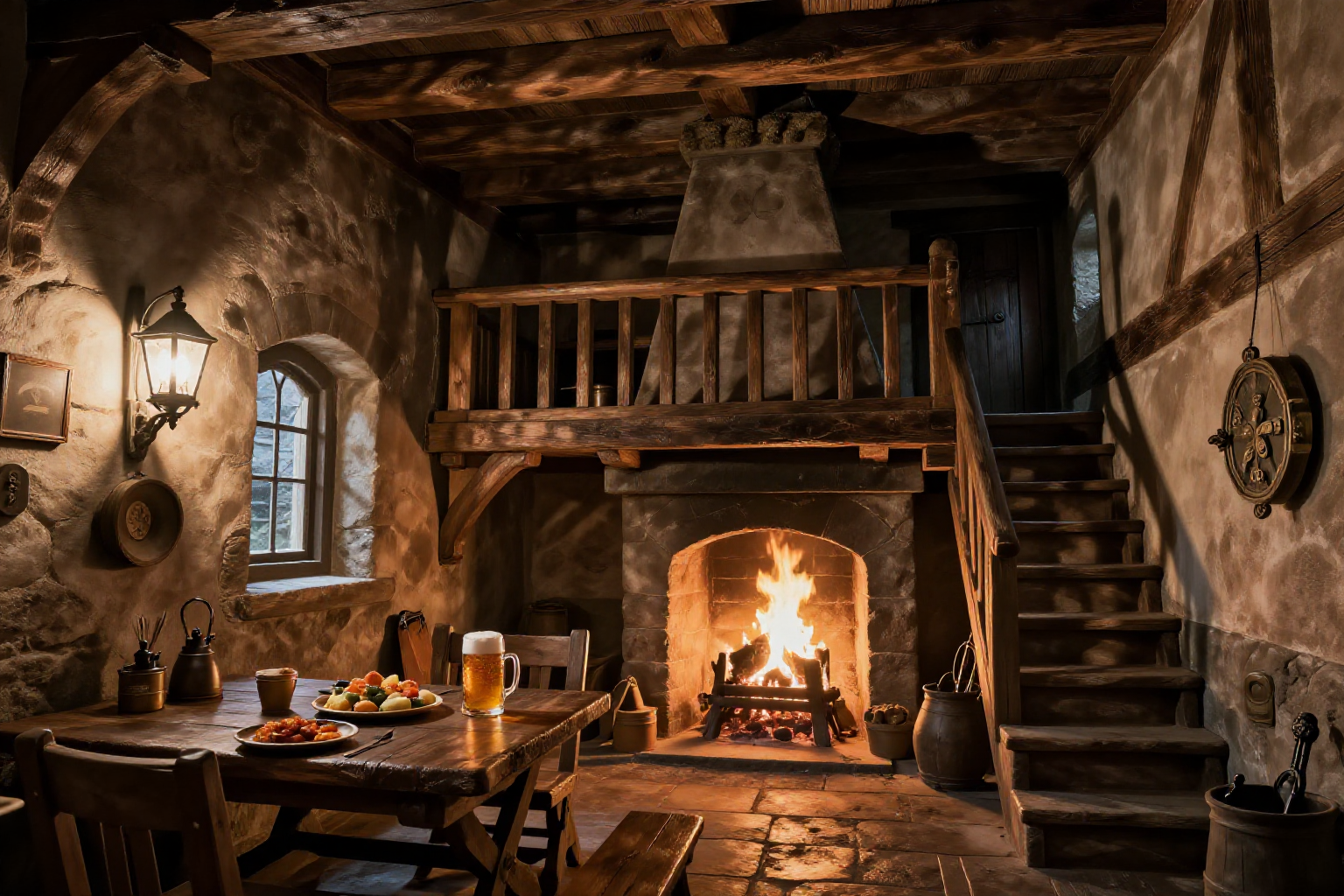 {屋外風景、家、建築、{空、昼、曇り空 | 夜、星満ちた空、} | 屋内、{3-8$$ 暖炉、| 窓辺 | テーブル | チェア | 食事 | ビール | グラス } }