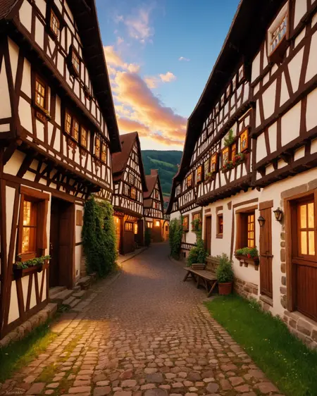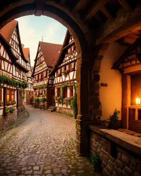 medieval german, fantasy illustration,half-timbered house, medieval building,