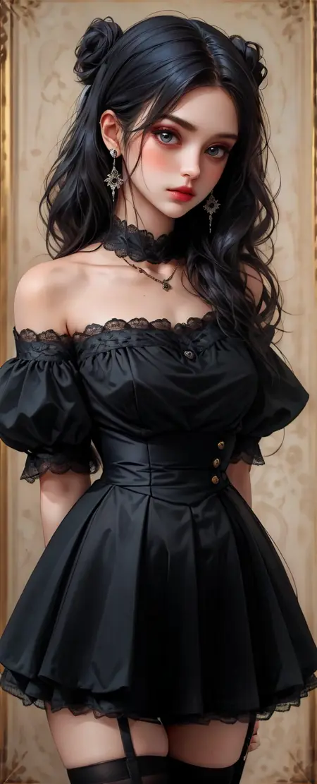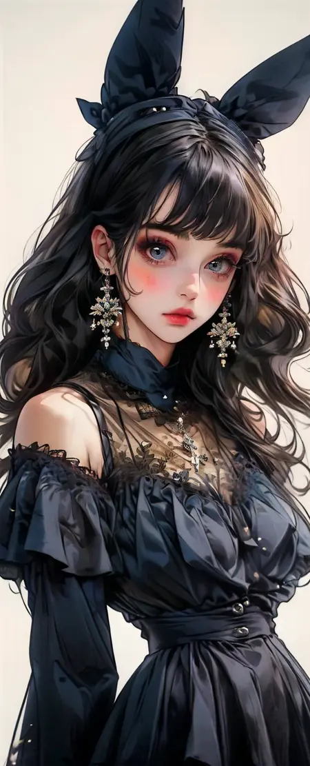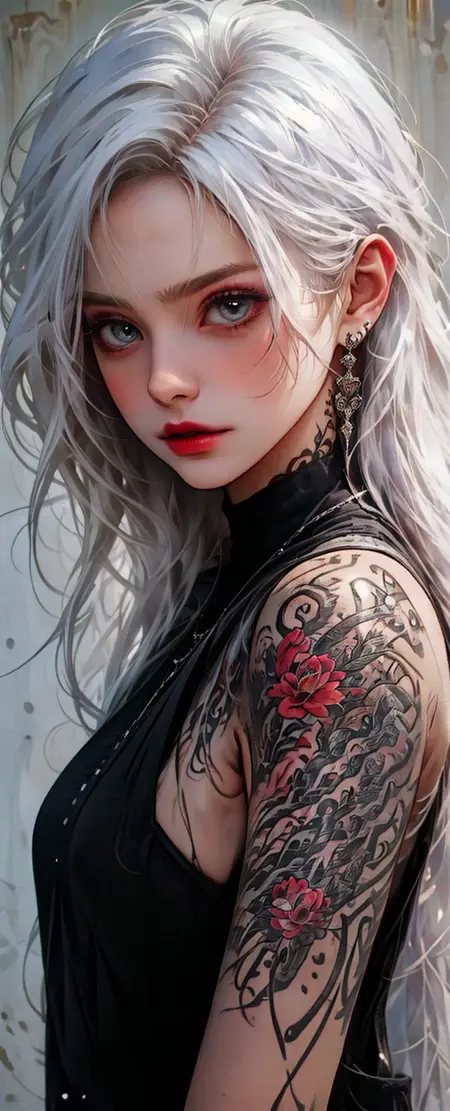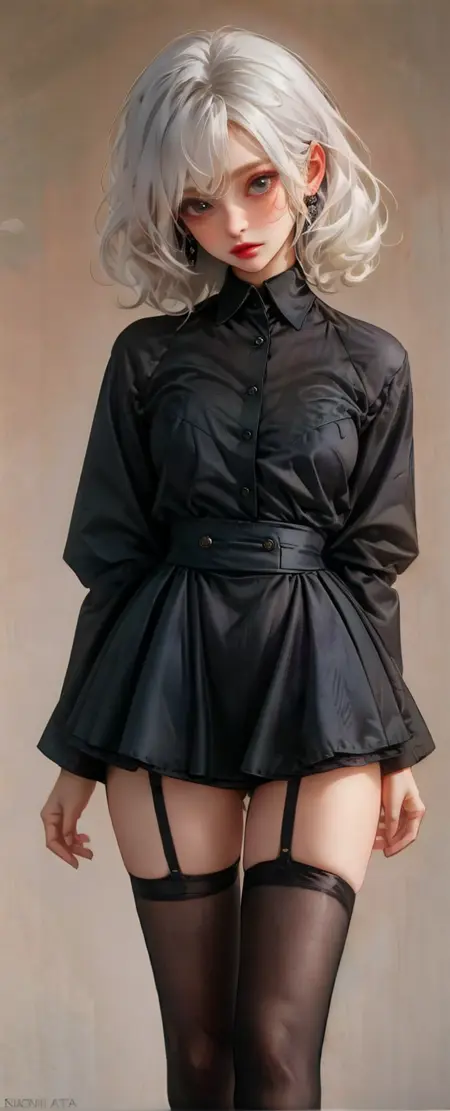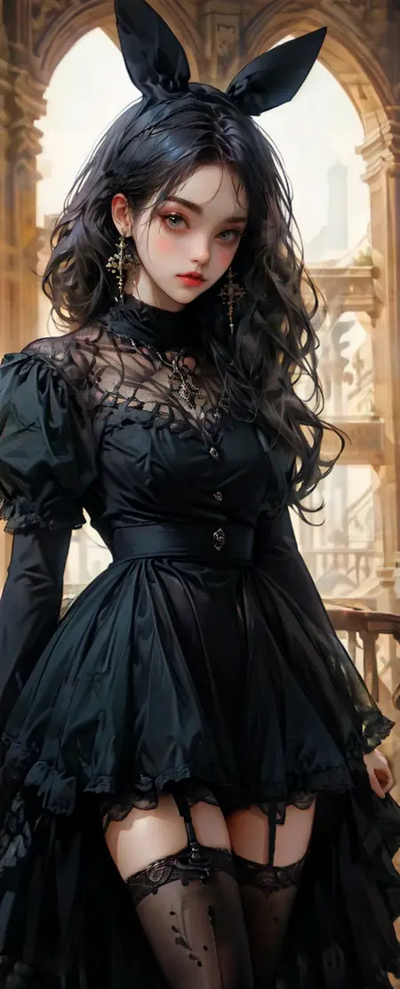 black stockings,gothic,1 girl,high quality,masterpiece,white hair,earrings,makeup,black stockingsgothic,gothic,lora:gothic\_01:0.8,