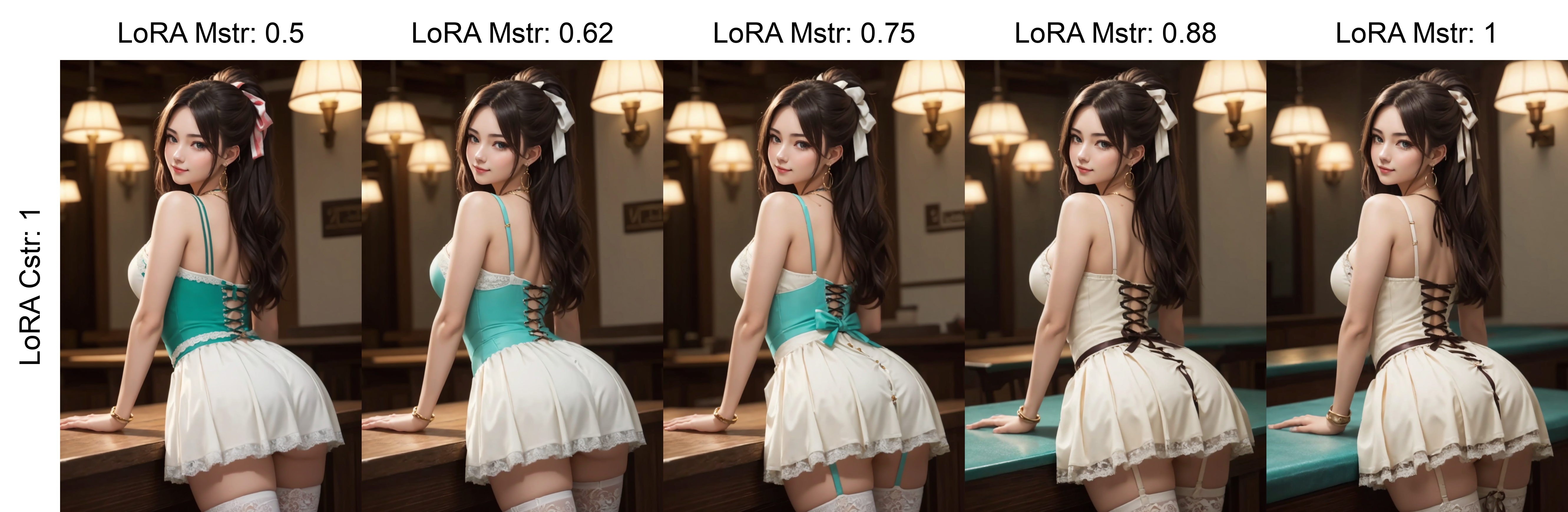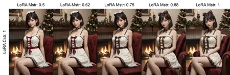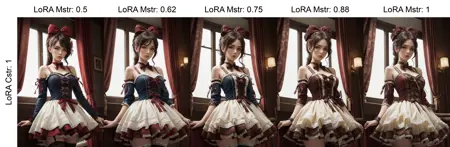 このモデルでは、キャラクターロラやスタイルロラと組み合わせて使用できます。非常に適応性が高いですが、必ずしも正確なドレスが再現されるわけではありません。バリエーションが発生する可能性があります。