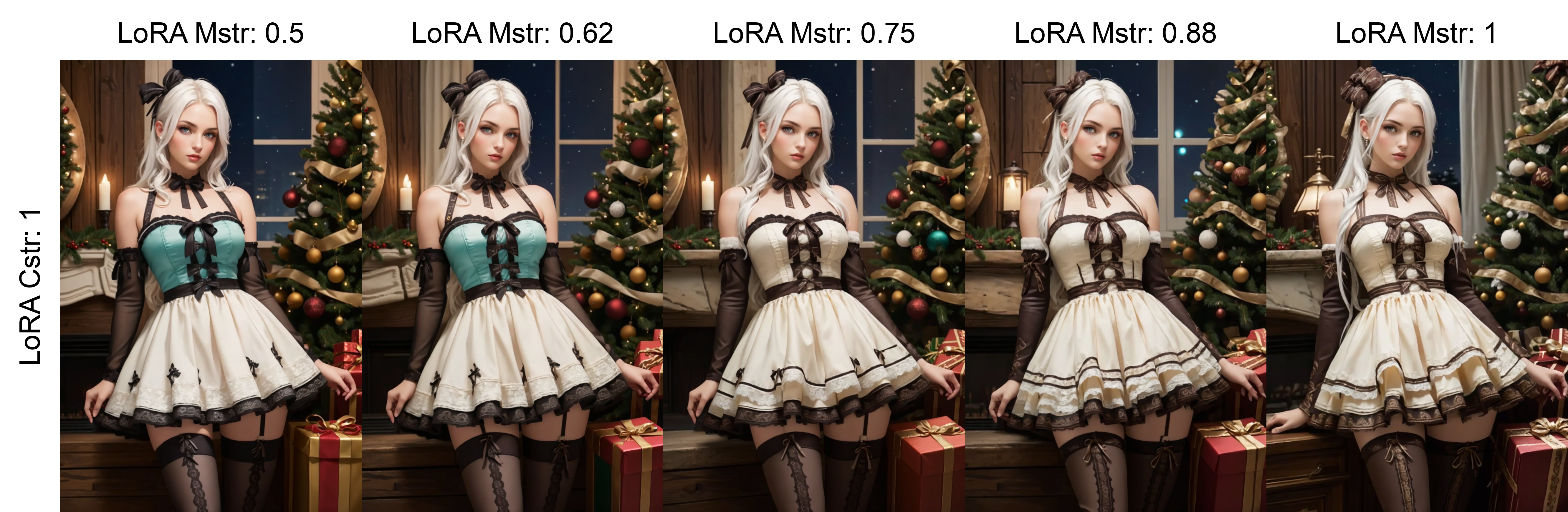 正確なドレスを再現したい場合、強度を1.0以上に設定してください