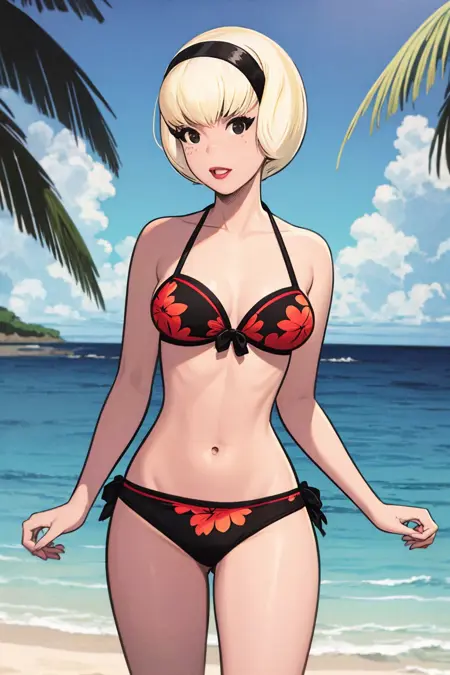 Basic prompts : 1girl, blonde hair, white hair, short hair, hairband, black eyes