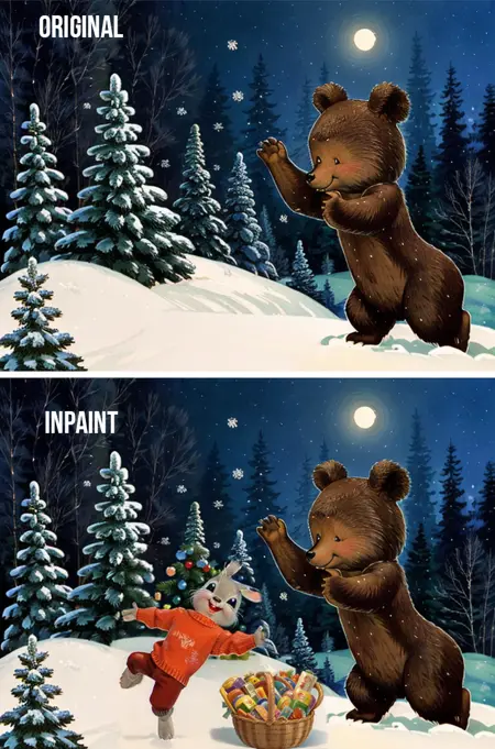 画像内の異なる動物を描画するには、インペイント機能を使用してください(例の画像をご覧ください)。
