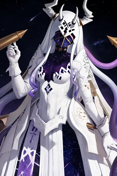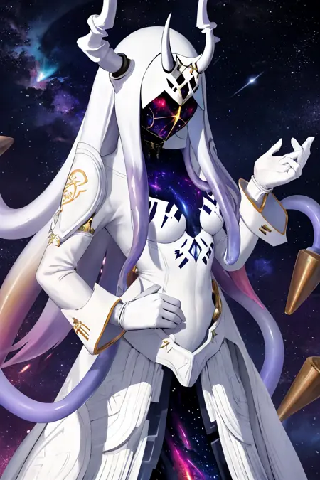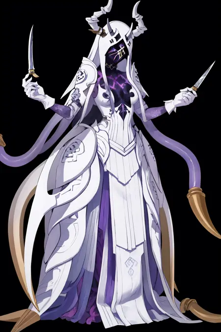 ginnungagap, horns, colored skin, purple skin, faceless, mask, tentacles, white gloves