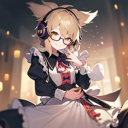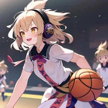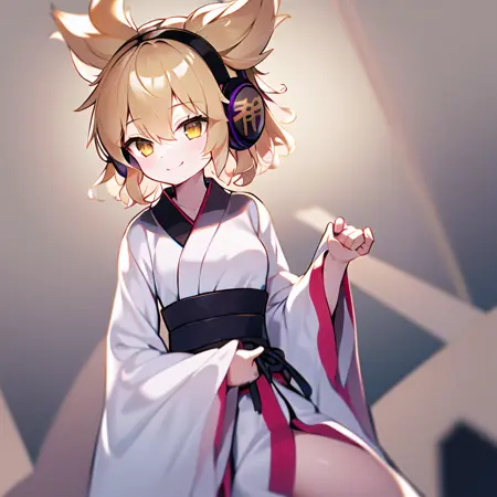 miko_taoist, toyosatomimi no miko, 短发, 尖发, 耳罩, 刘海, 小胸, 金发, 棕发, 棕眼, 黄眼,