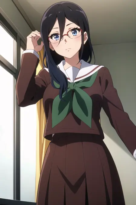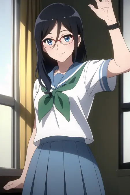 school uniform, blue neckerchief, short sleeves, ( or kitauji high school uniform, long sleeves, black pantyhose)