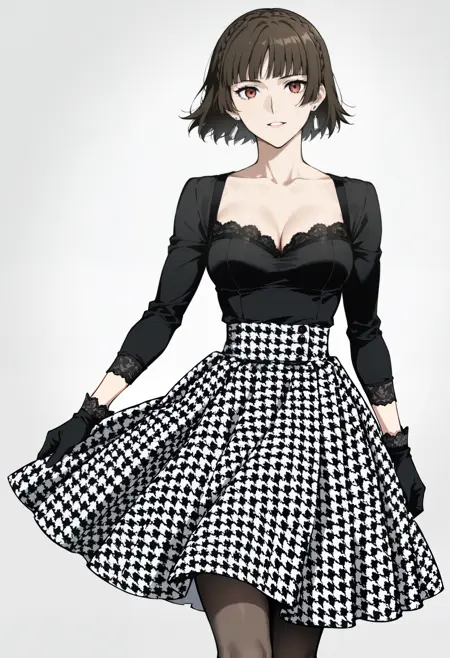 Le Palais Houndstooth Skirt & Lace Trim Top