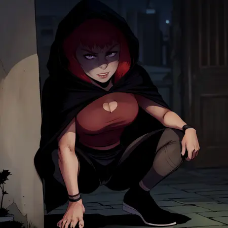트리거: 붉은 머리의 hayeon, 드러난 드레스, 양말, 신발, 망토(원한다면 힙)
