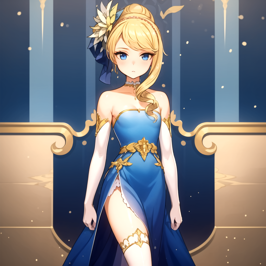 Based on the 2001 video game Ragnarök Online's Spica Nerius. Capable (sort of) of making both her outfits, the white and the blue one. For her cool headdress she sometimes uses put in "halo hair ornament" and it will get it (sometimes).