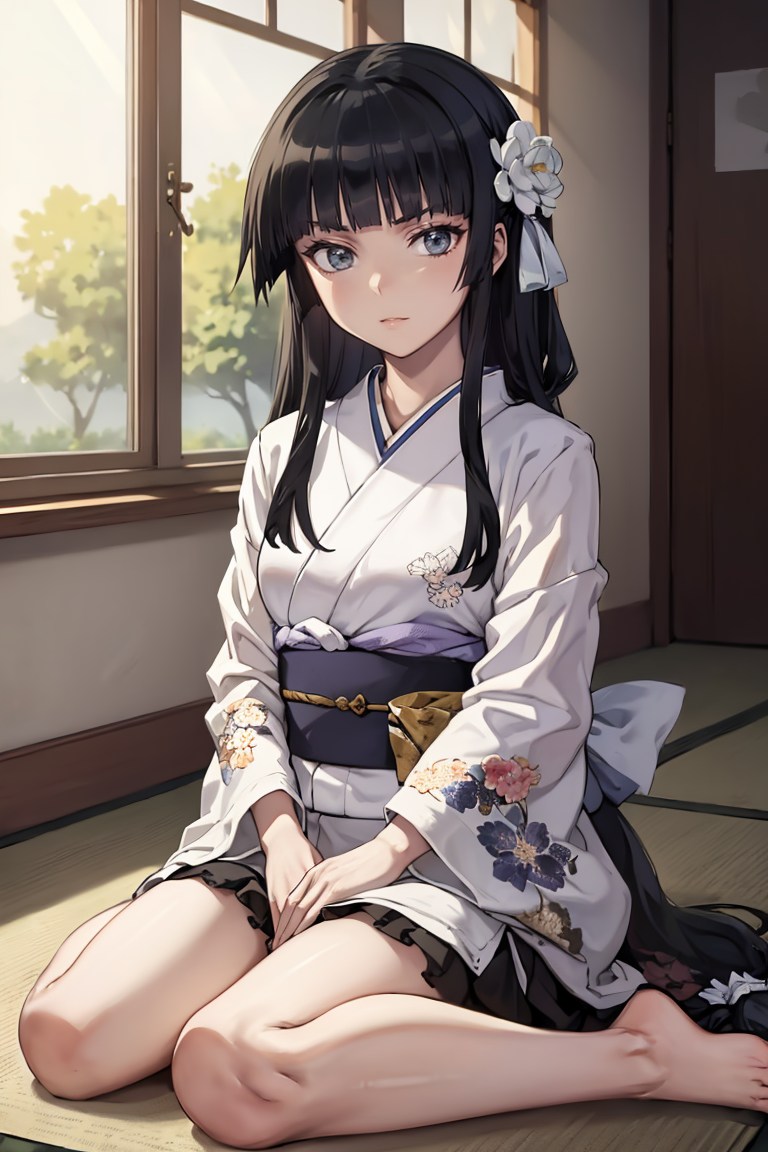 UmeShiraume, low-tied long hair, white ribbon