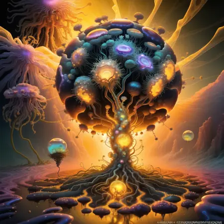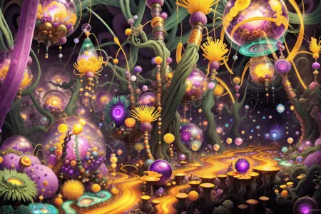 프로토조아, 박테리아, 바이러스를 떠올리게 하는 특이한 스타일. 디즈니의 최근 영화 <스트레인지 월드>, 오래된 영화 <판타스틱 바이오빙>, <앤트맨: 퀀텀메니아>의 퀀텀 리얼름을 떠올리되, 더 많이 꽃을 기반으로 한 스타일입니다.
