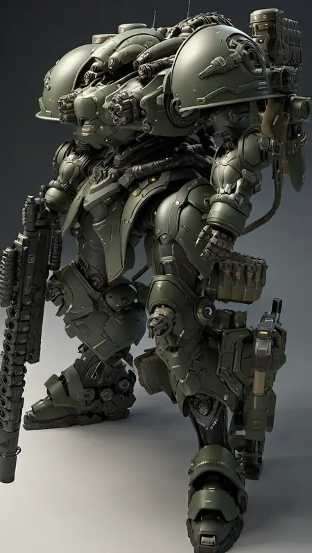 It is possible to generate robots with a heavy, massive body structure. Prompts for additional weapons would make it even more powerful.