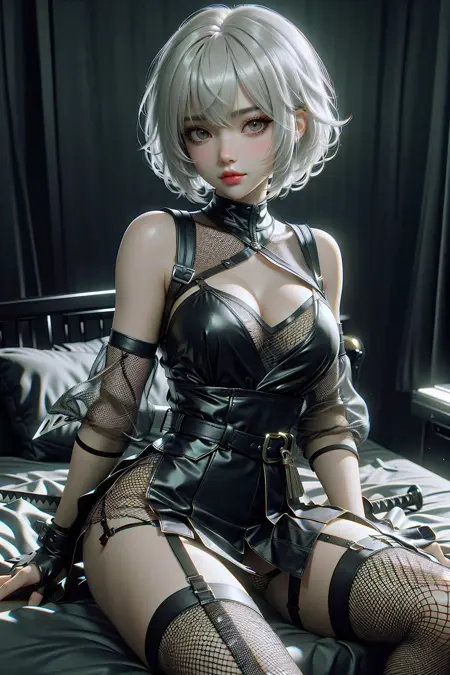 ninja girl, fishnets, garter straps, garter straps,